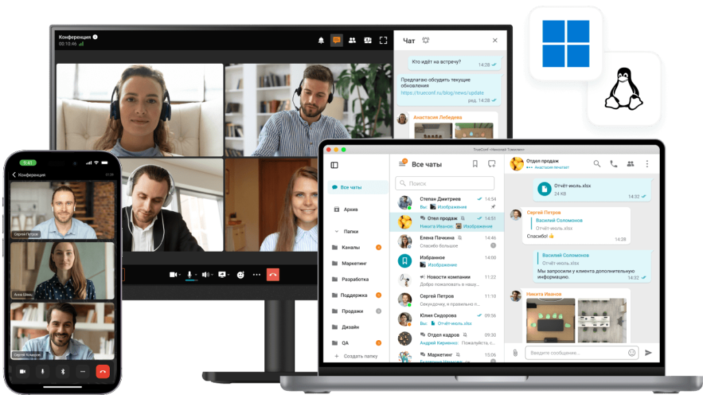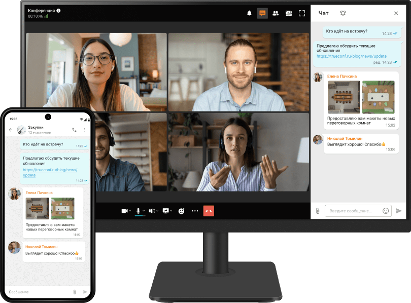 Миссия Труконф — обеспечить пользователей доступной безопасной видеосвязью и эффективными инструментами совместной работы. Общайтесь с коллегами и клиентами с любого устройства, где бы вы ни находились: в офисе, дома, в командировке или в пути.